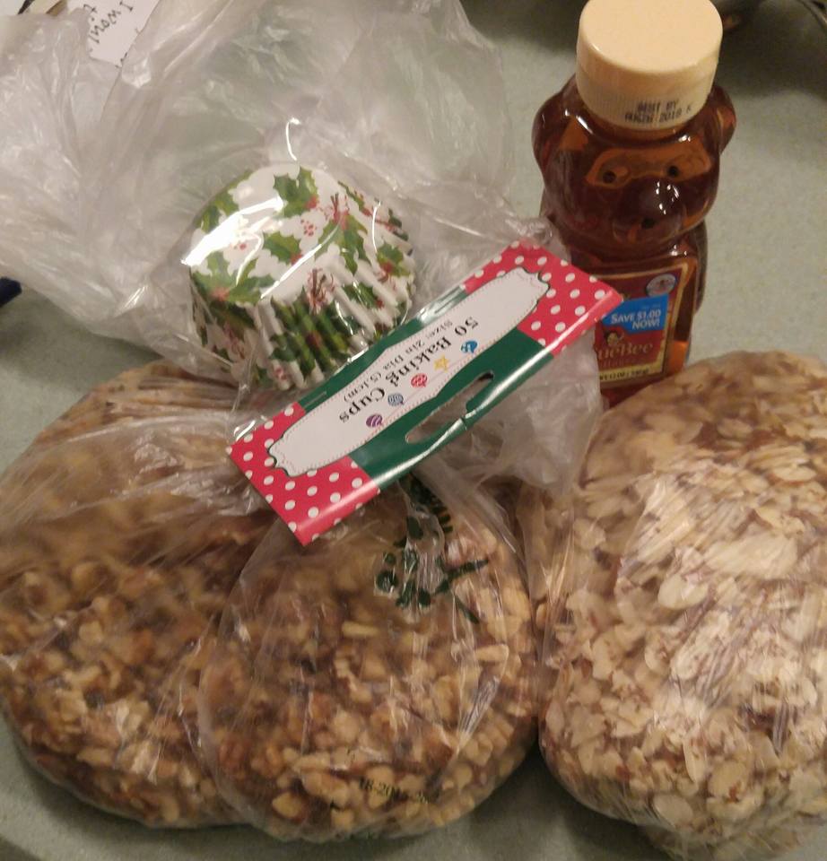 1 pound nuts (chopped walnuts and slivered almonds)